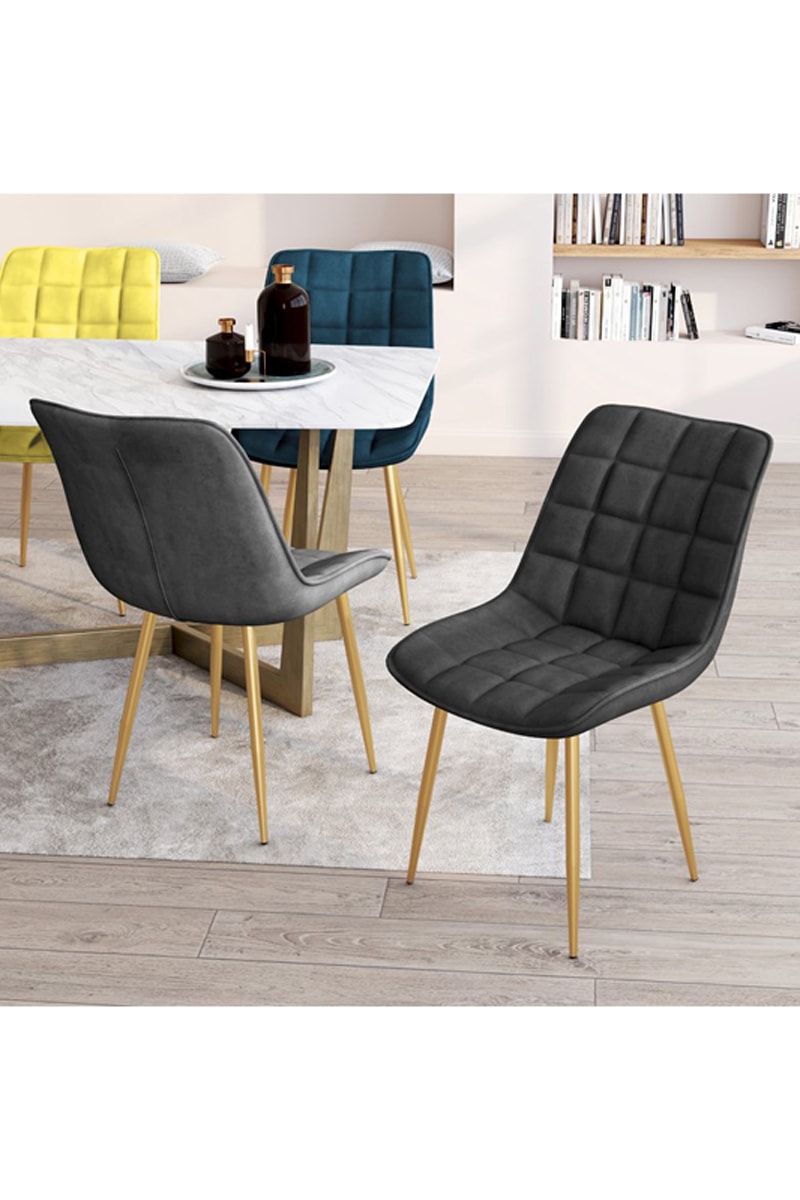 Ideais para se sentar à volta de uma mesa e criar um ambiente acolhedor, estas cadeiras, com as suas linhas simples, vão valorizar o seu interior. Assento de veludo, largo e almofadado garante um conforto absoluto e dá um toque de aconchego à sua sala de jantar.