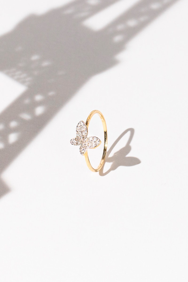 Anel de ouro amarelo incrustado com 20 diamantes.