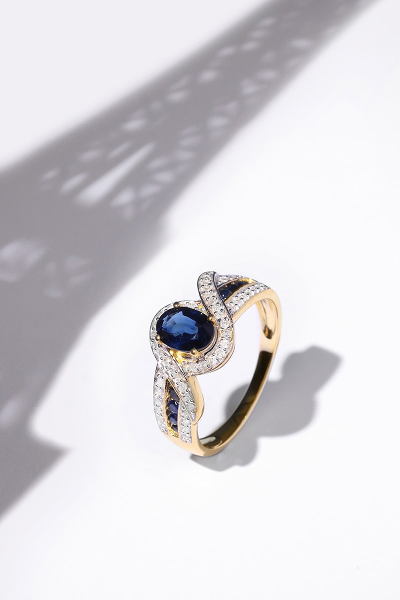 Anel Romblon - Ouro amarelo, diamantes e safira