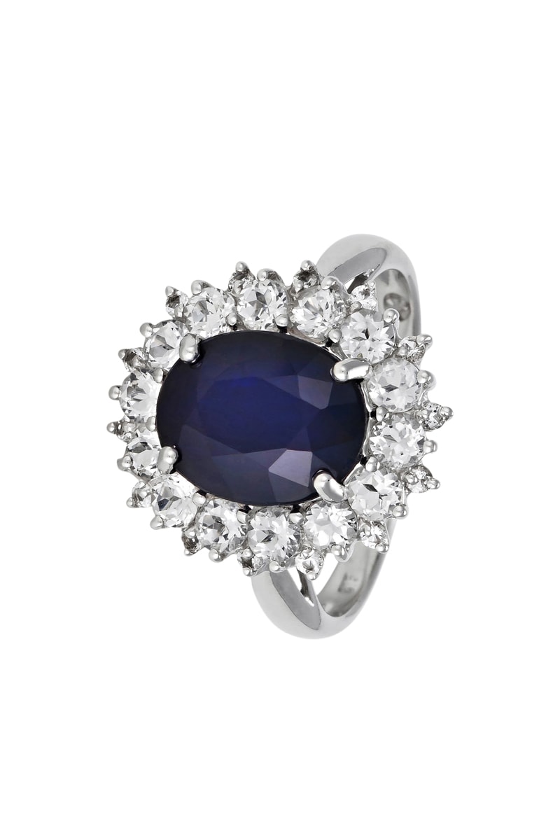 Anel Soleil Bleu - Ouro branco, topázios e safira