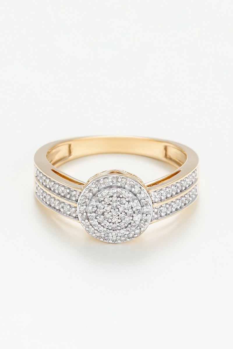 Anel de ouro amarelo com 98 diamantes.
