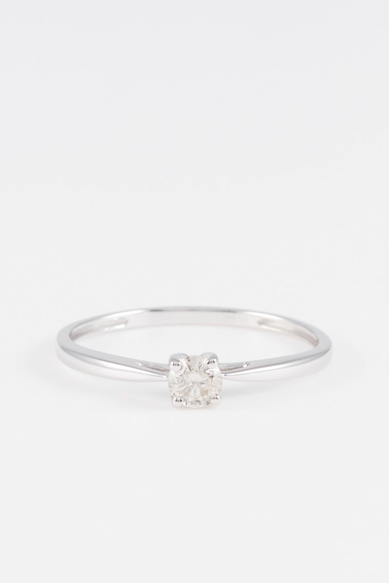 Anel em ouro branco com um diamante.