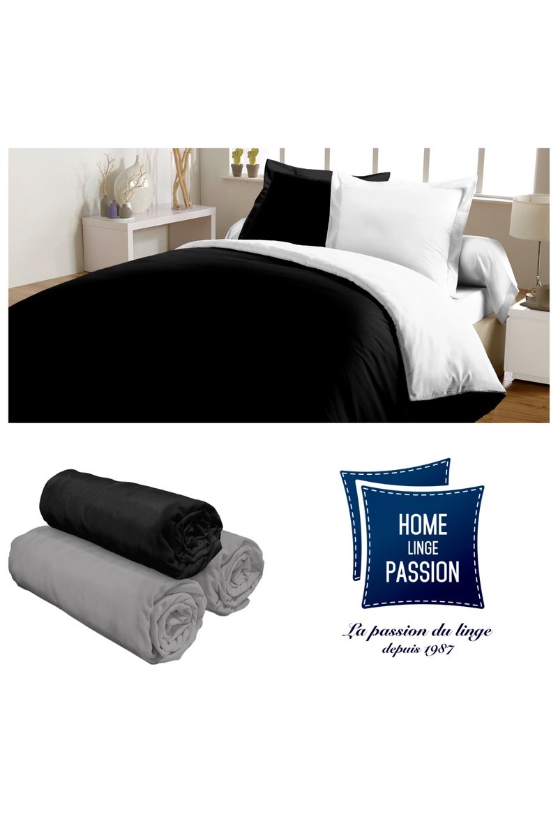 Conjunto de edredão e 3 lençóis-capa em algodão 57 fios/cm² - Preto e branco