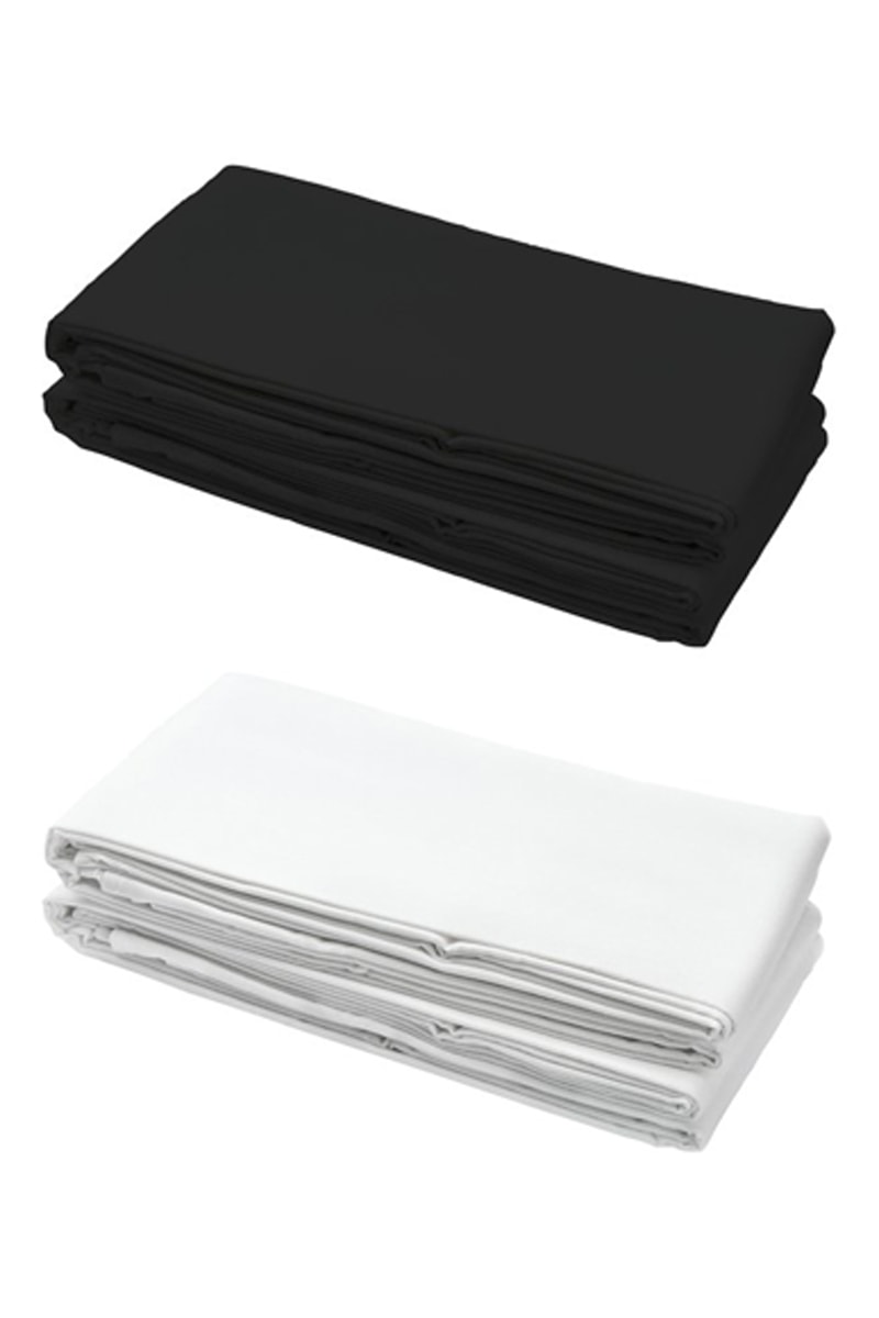 2 lençóis lisos de algodão 57 fios/cm²- Preto e branco
