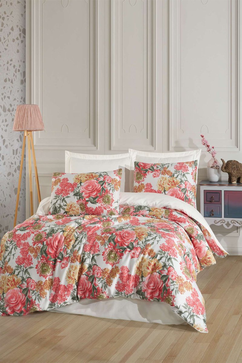 Conjunto de edredão em algodão 182 fios/m² Lotus - Rosa e branco
