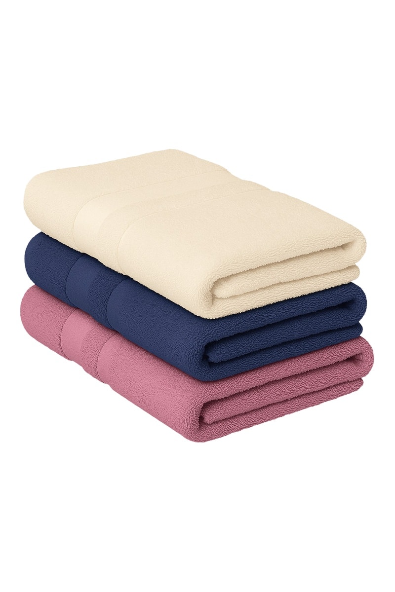 3 toalha de mãos Le temps d'un bain - Bege, azul e rosa - 50 x 100 cm