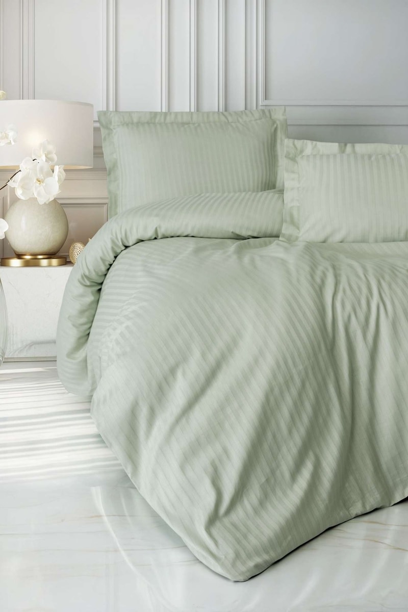 Capa de edredão em cetim de algodão - 83 fios/cm² Stripe - Verde