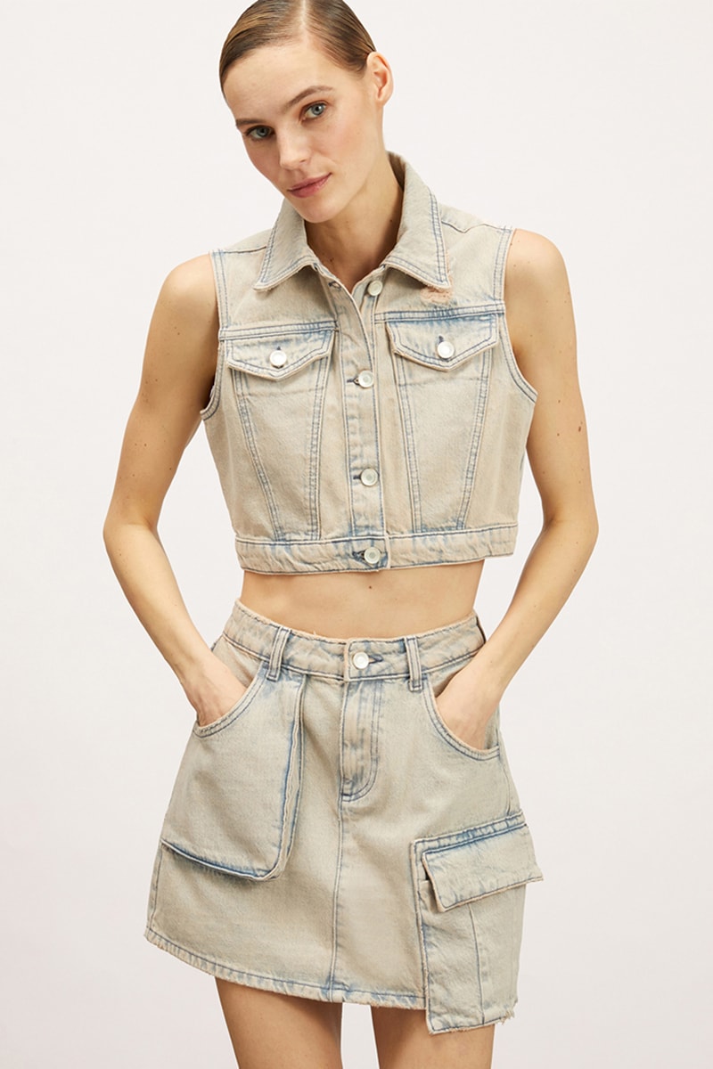 Colete curto de ganga.