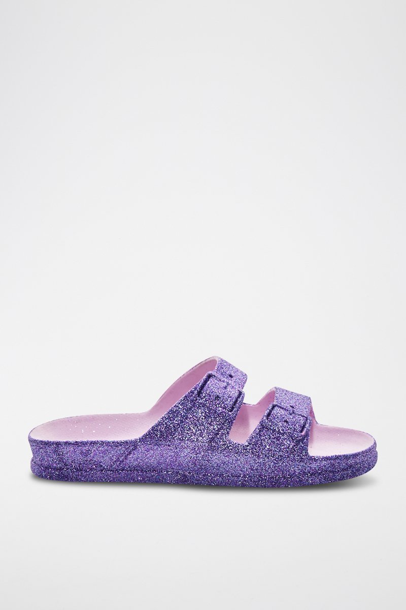 Mules com purpurinas.