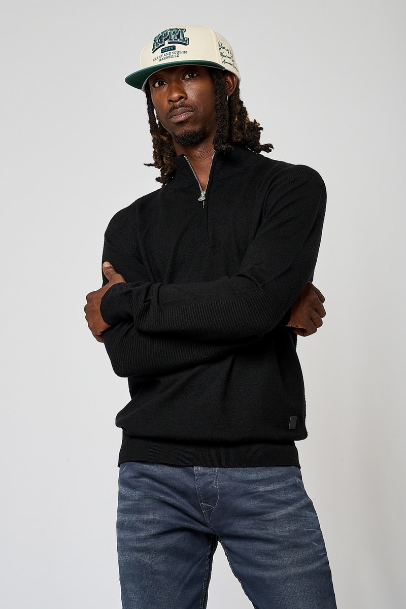 Gola subida com fecho zip.