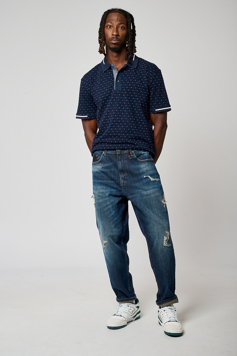 O modelo mede 180 cm e veste o artigo no tamanho 32US.