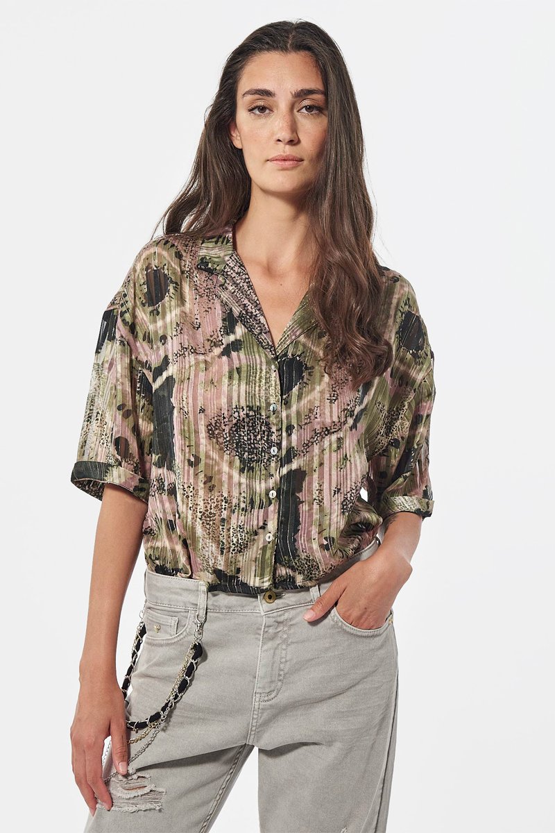 Camisa plissada Neka - Verde e rosa