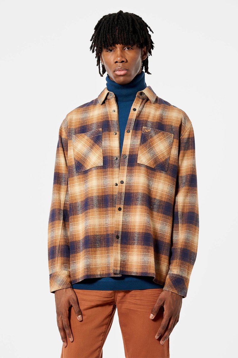 Estampado aos quadrados nas mangas, à frente e atrás.
