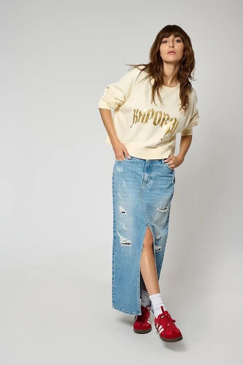 O modelo mede 173 cm e veste o artigo no tamanho S.