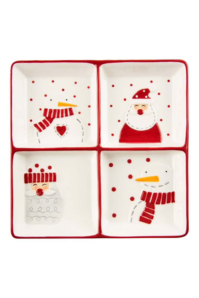 Prato com 4 compartimentos em cerâmica - 19,8 x 19,8 x 3 cm