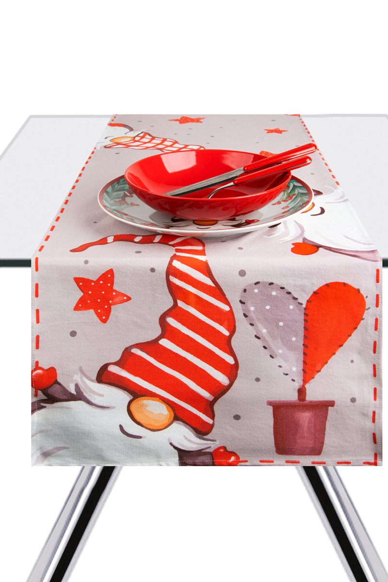 Caminho de mesa - Vermelho e cinzento - 45 x 140 cm