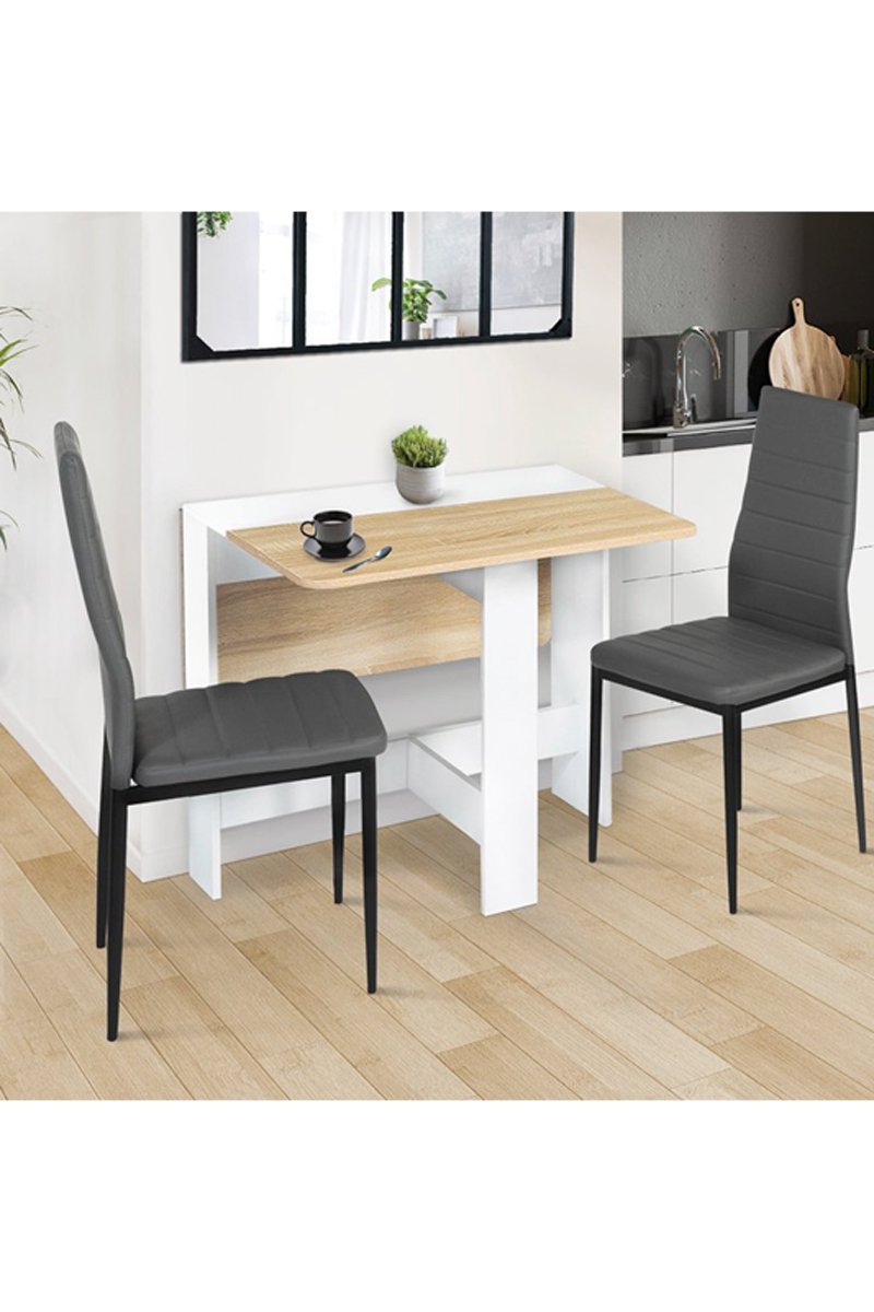 Mesa de refeição quadrada dobrável Edi madeira e branco