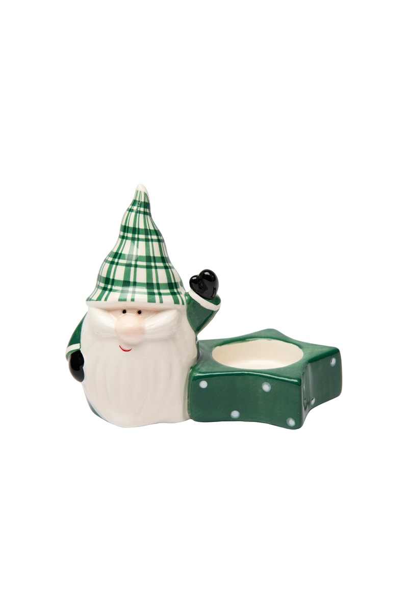 Castiçal em cerâmica Green Winter - 13,5 x 8,5 x 11 cm