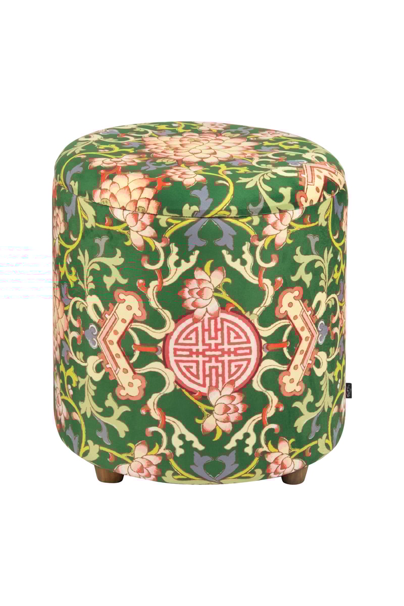 Pufe-baú La V.D. Seta - Verde-escuro e bege - Toque veludo