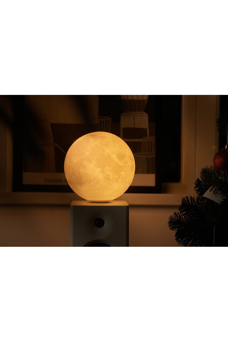 Esta lâmpada assemelha-se a um globo impresso em 3D que flutua perfeitamente acima de uma base de madeira resistente, criando um ambiente sedutor e sofisticado. Este globo é interativo e muda entre três cores claras suaves: branco quente, branco frio e branco quente, com um simples toque, permitindo-lhe definir o clima de acordo com as suas preferências.