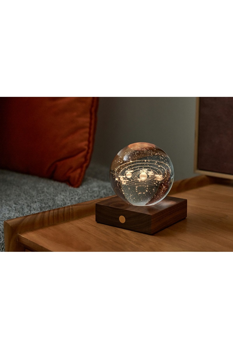 Candeeiro de mesa sistema solar em madeira Amber Crystal Light - branco e transparente