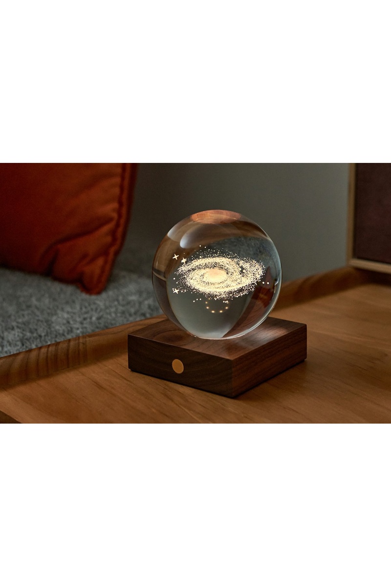 Candeeiro de mesa galáxia em madeira Amber Crystal Light - branco e transparente