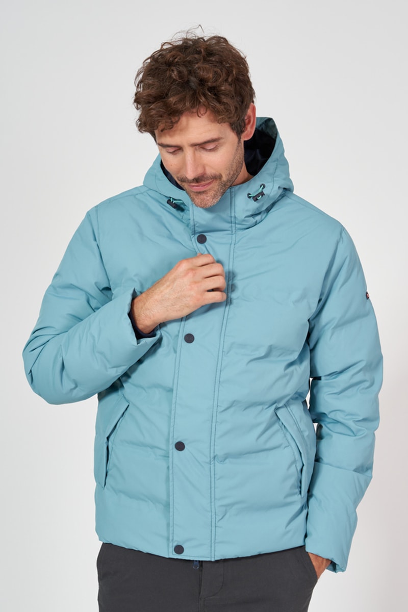 Blusão com capuz com atilhos de ajuste e travões de cordão.
