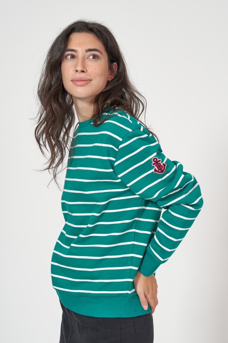 Sweat de mangas compridas 1 das quais com padrão bordado. Gola redonda.