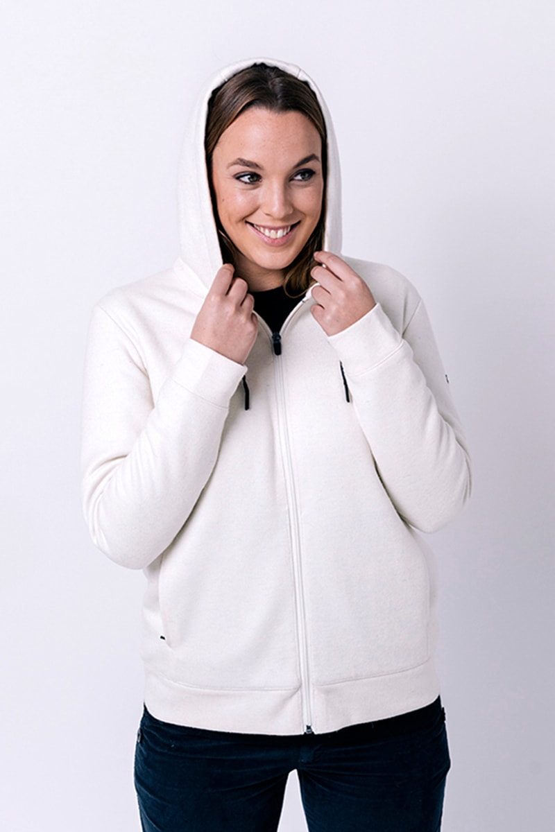 Capuz com atilhos de ajuste e travões de cordão.