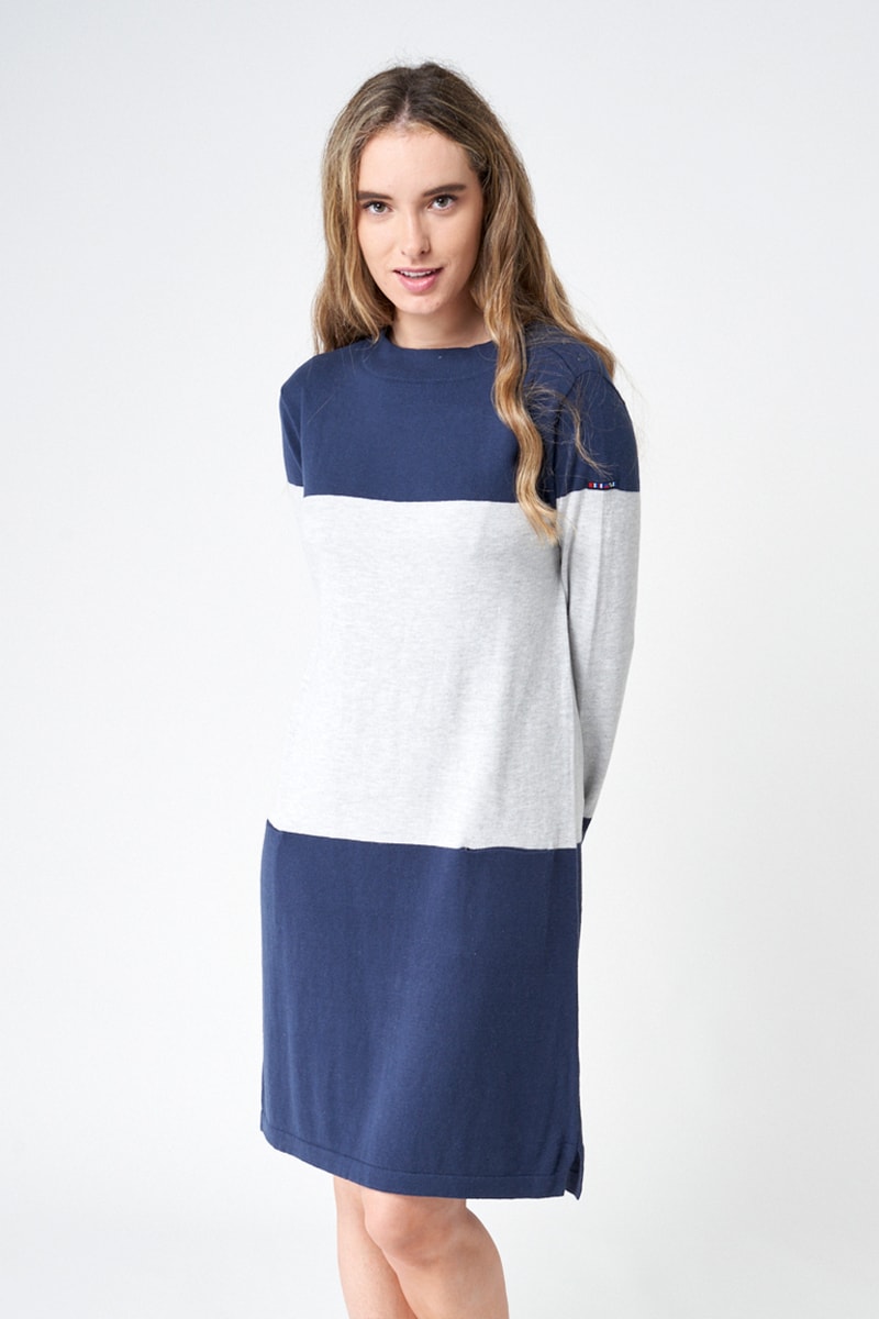 Vestido-sweat - Azul-marinho e cinzento-claro mesclado