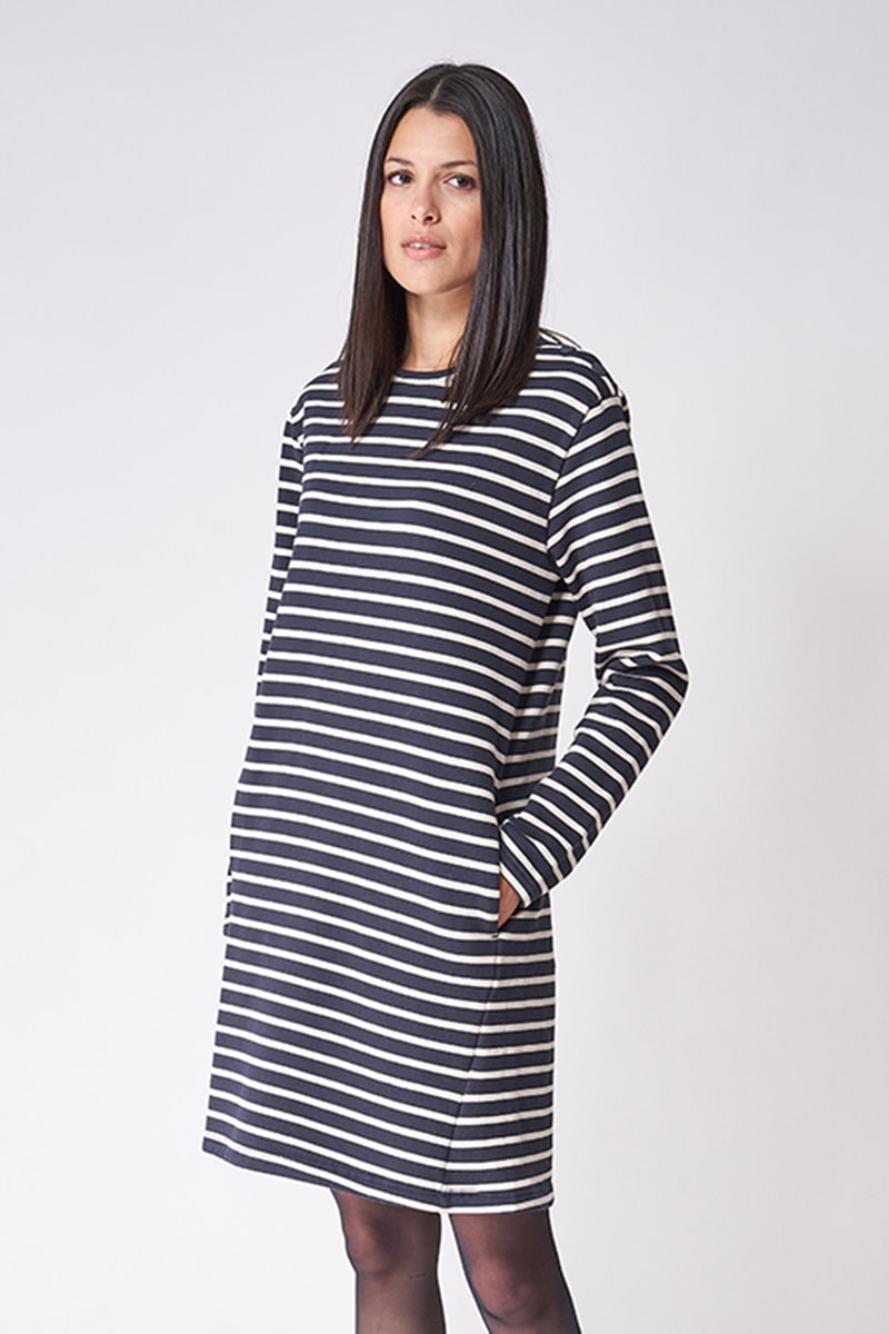 Vestido direito - Azul-marinho e branco