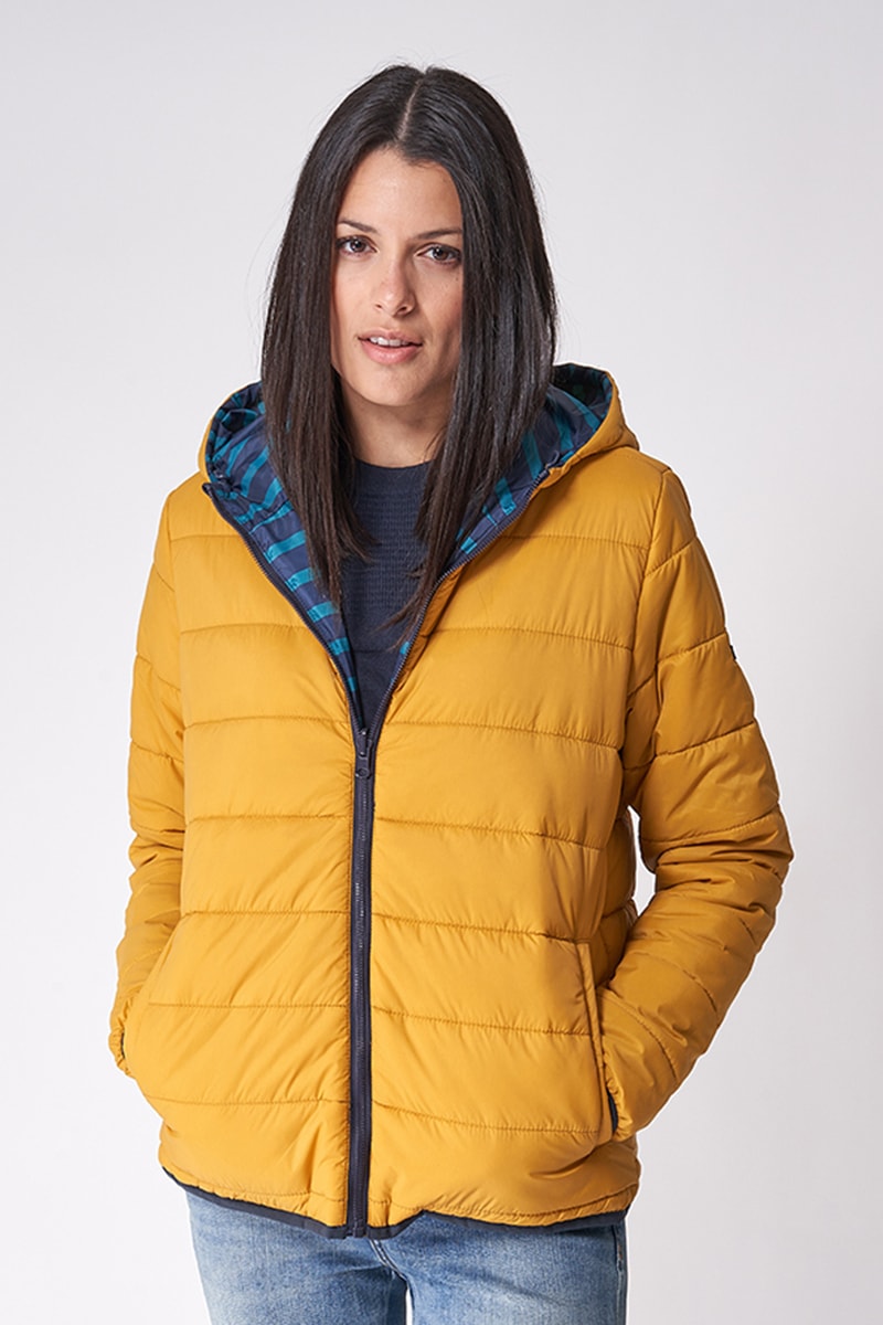 Blusão reversível com capuz - Amarelo e azul-marinho
