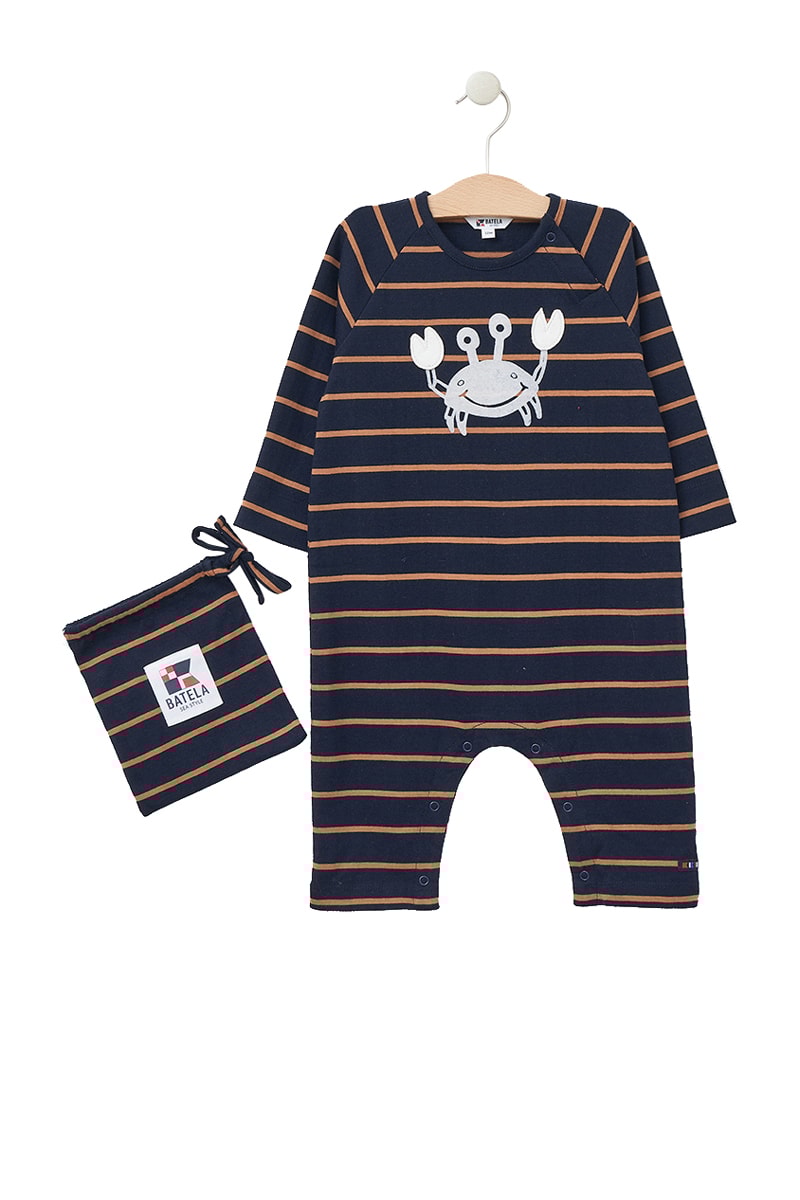 Macacão de mangas compridas raglã.