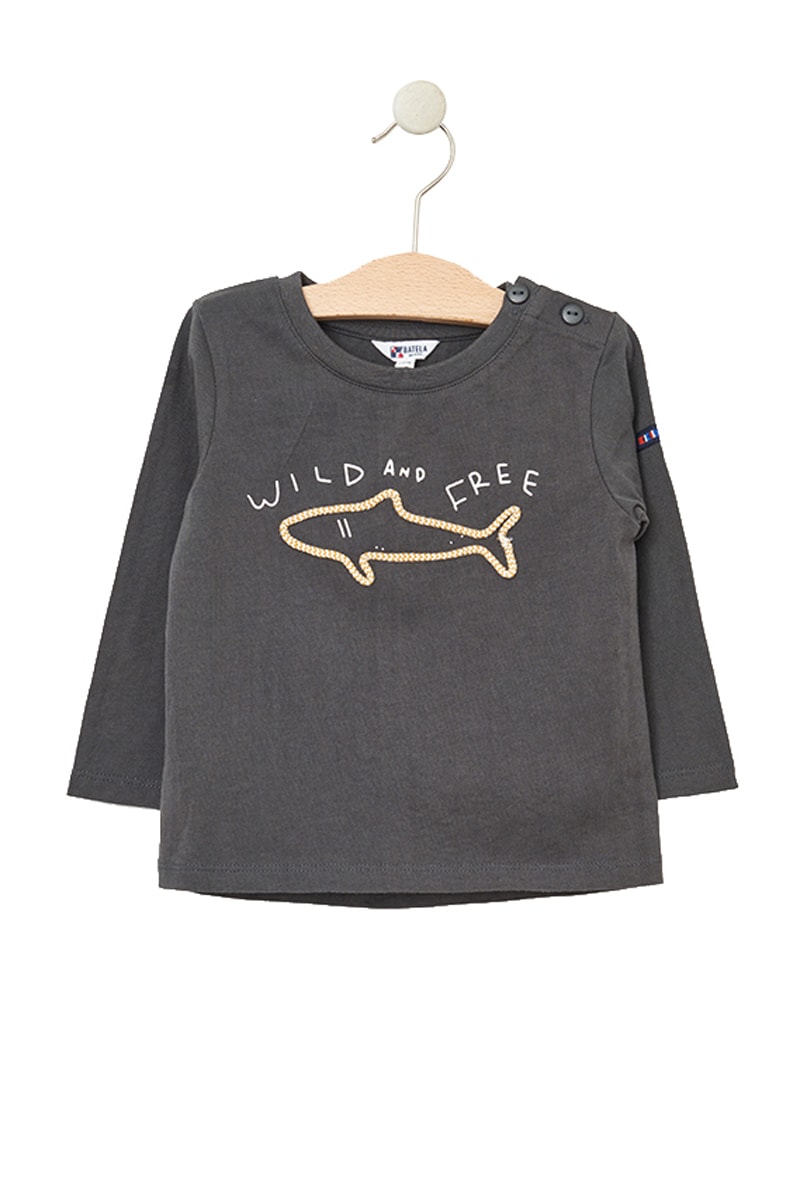 T-shirt de mangas compridas 1 das quais com aplicação a contrastar.
