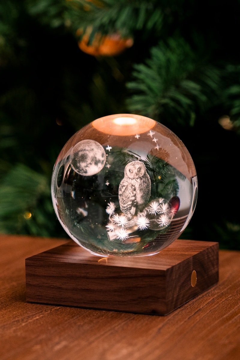 Bola luminosa Amber Crystal Owl & Moon - Transparente