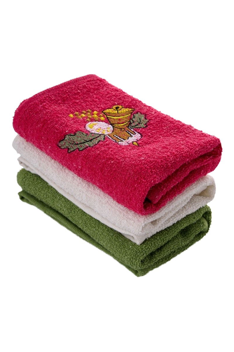 3 toalhas de rosto - Vermelho e verde - 30 x 50 cm
