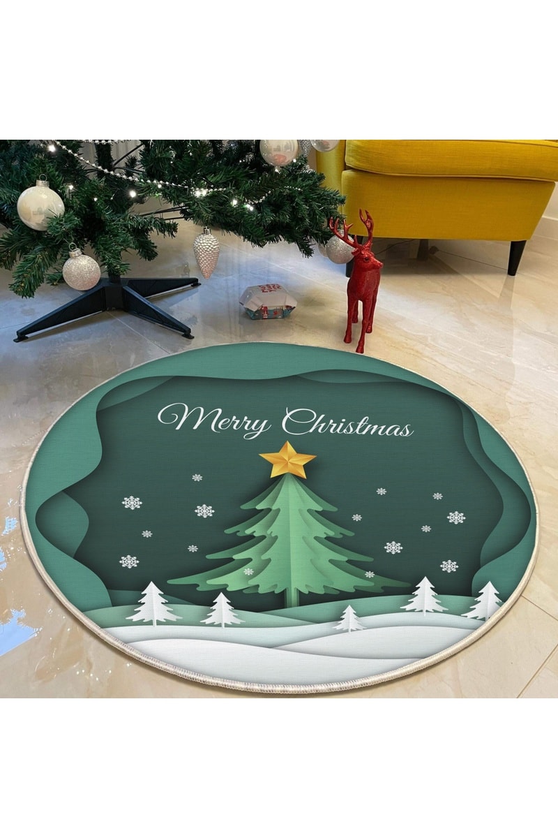 Estampado de árvore de natal e inscrição "Merry Christmas".