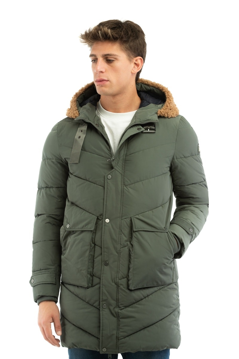 Mangas compridas com lingueta pressionável 1 das quais com remendo e logótipo.