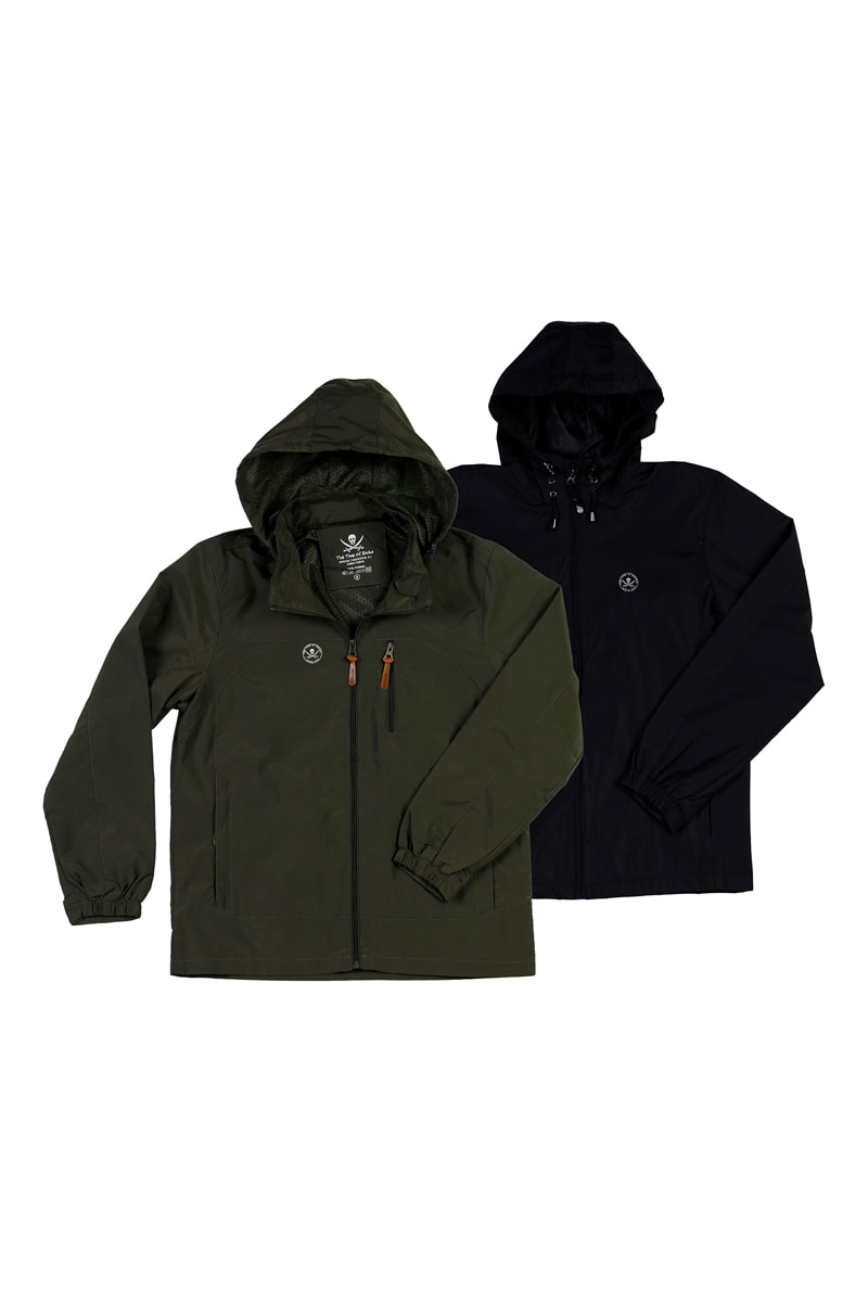 2 corta-ventos regular com capuz com atilhos de ajuste.