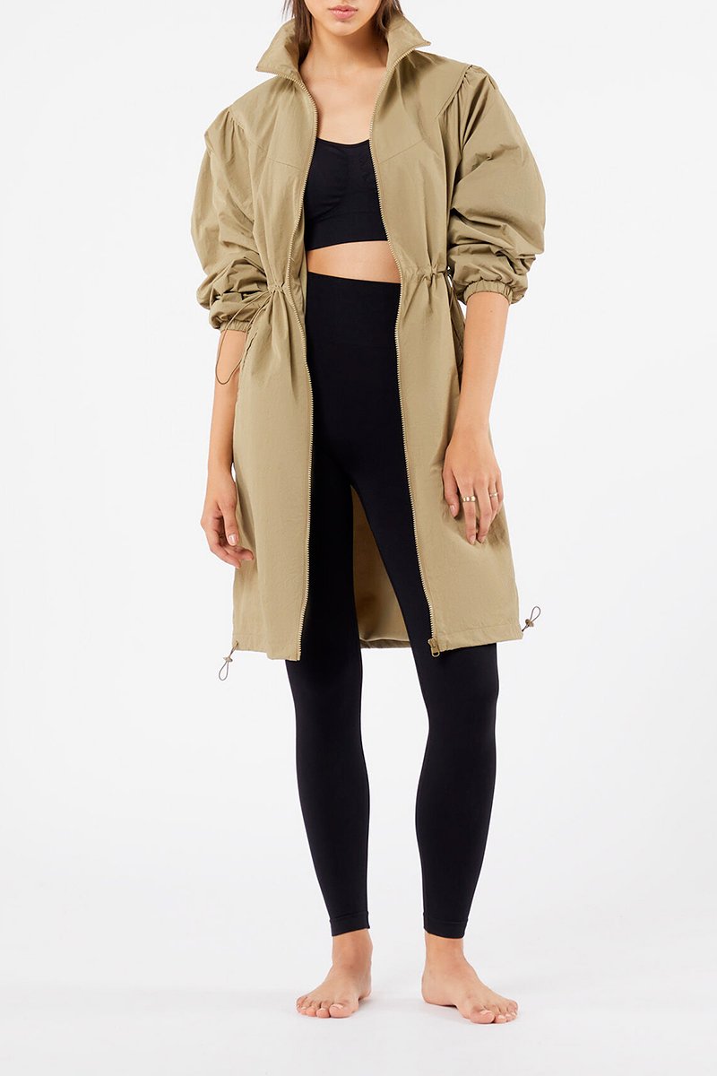 Atilhos de ajuste com travões de cordão na cintura e na base.