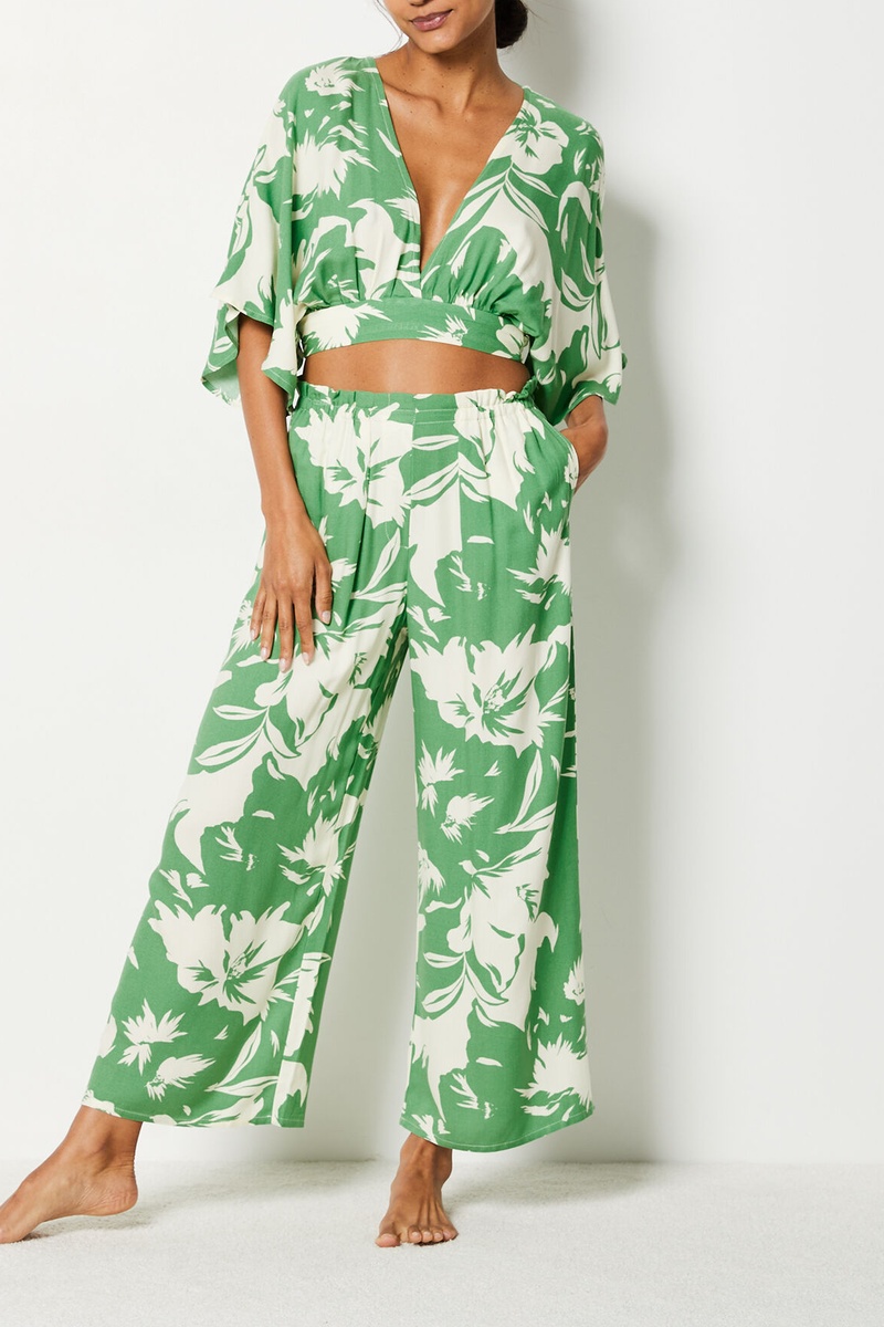 Calças de pijama de cintura subida - Verde-claro