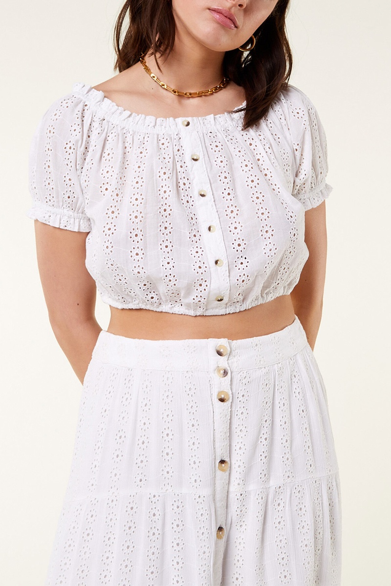 Crop top em bordado inglês - Branco