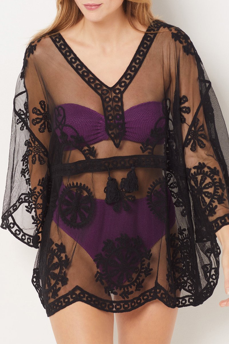 Túnica de praia en tulle brodé.
