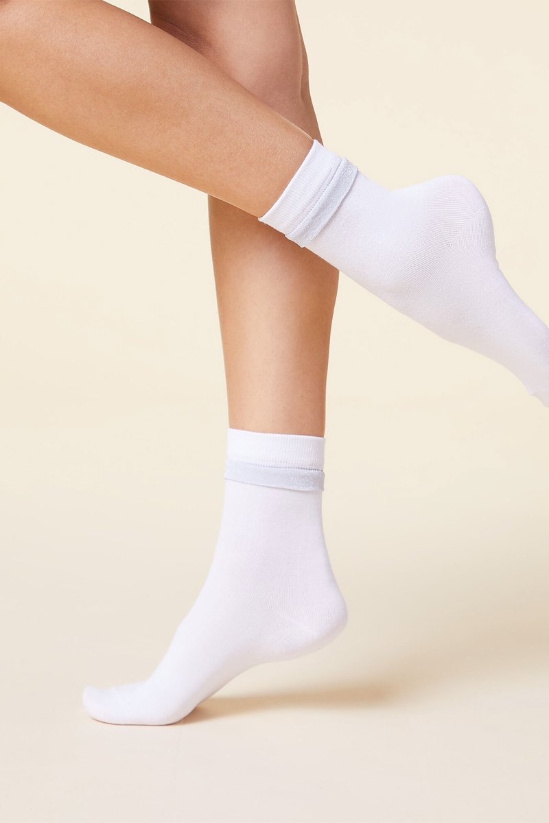 Composição: 62% algodão, 29% poliéster, 4% nylon, 2% elastano e 1% fibra metálica