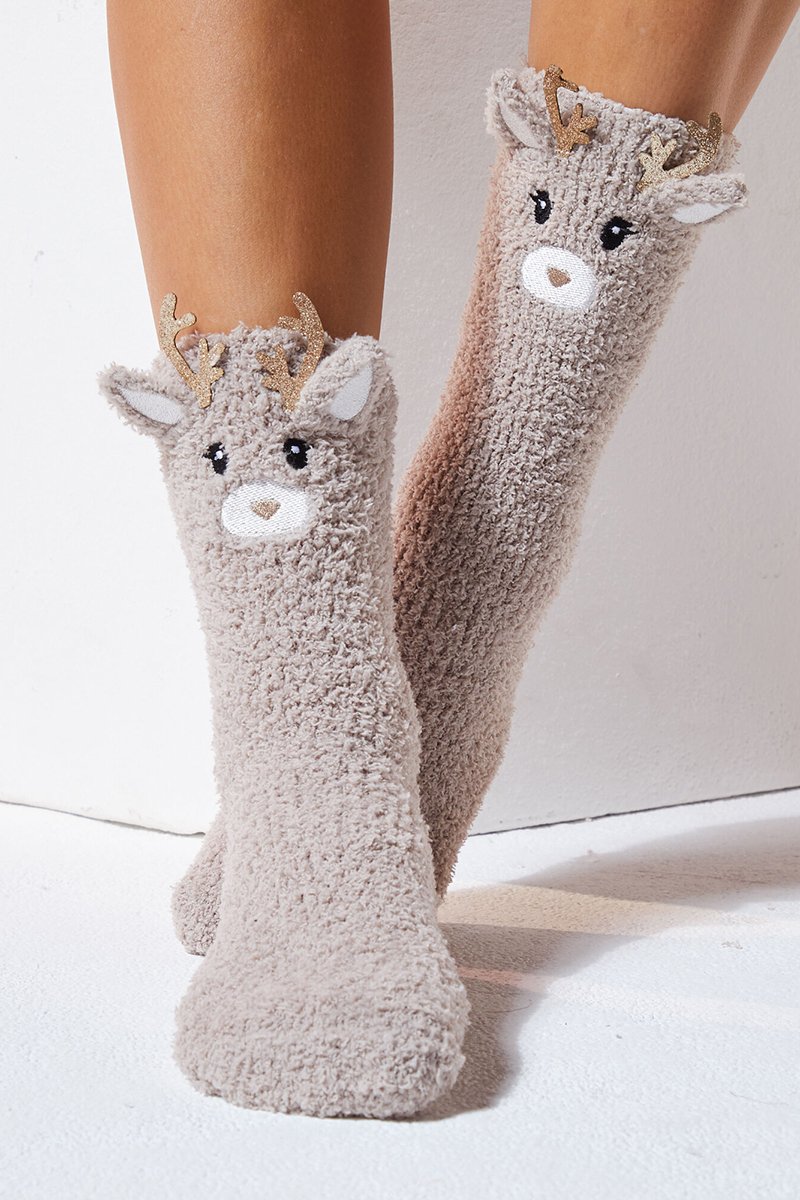 Padrão de veado em relevo e aplicação em forma de chifre à frente.