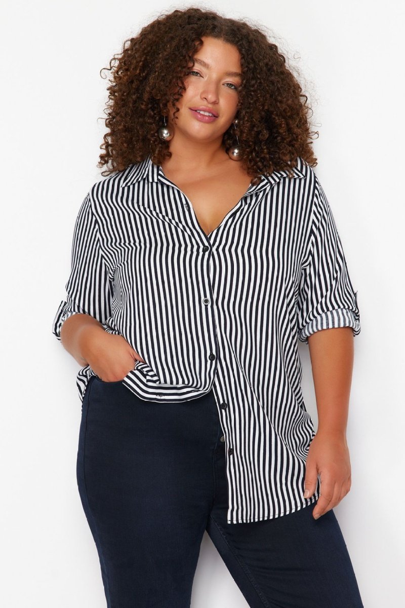 Camisa de mangas compridas arregaçáveis com tira abotoável.