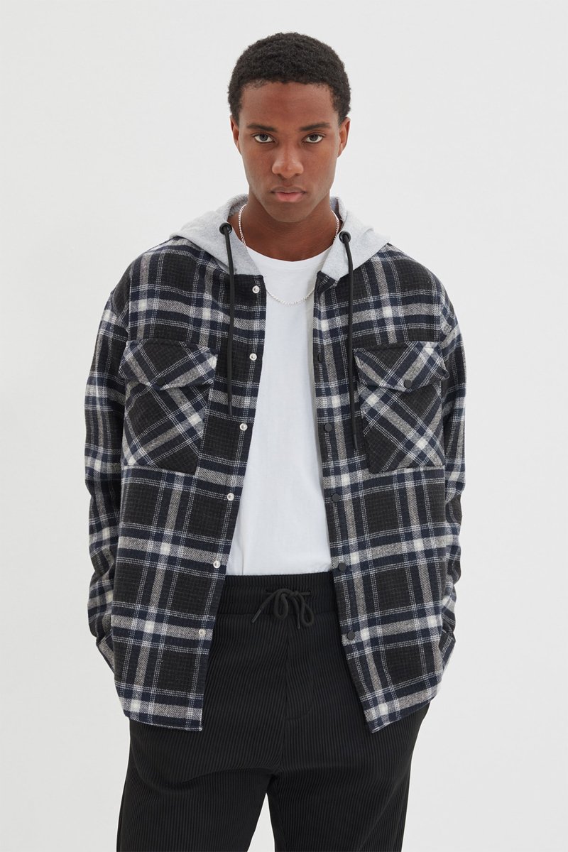Sobrecamisa com capuz - Preto e cinzento-claro mesclado