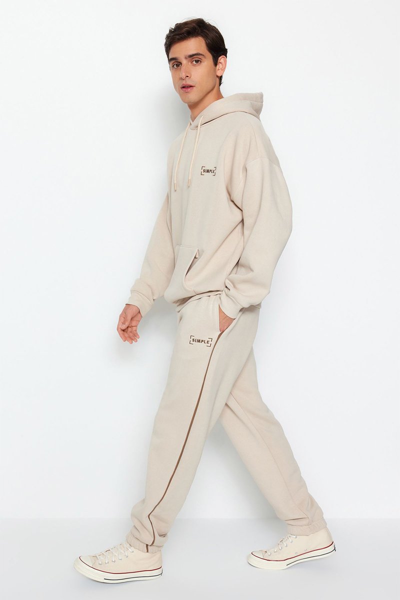 Sweat com capuz e calças - Bege