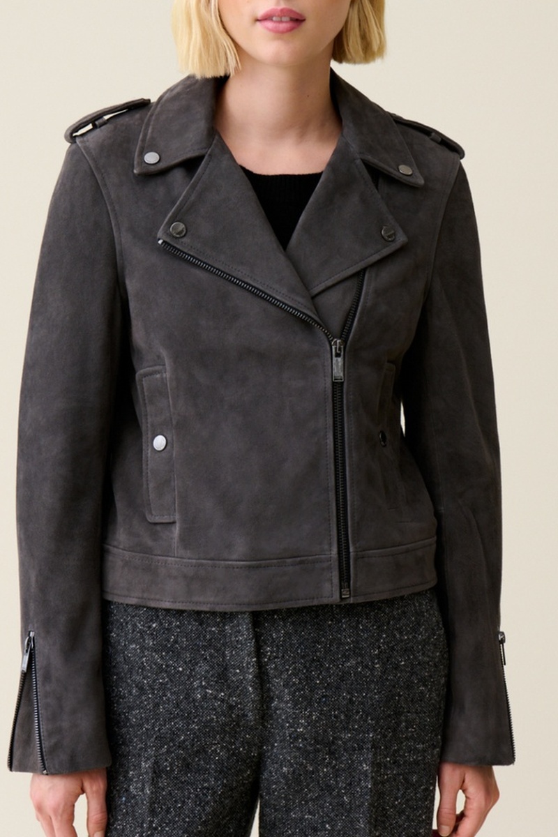 Casaco em raspa de couro de cabra - Cinzento-escuro