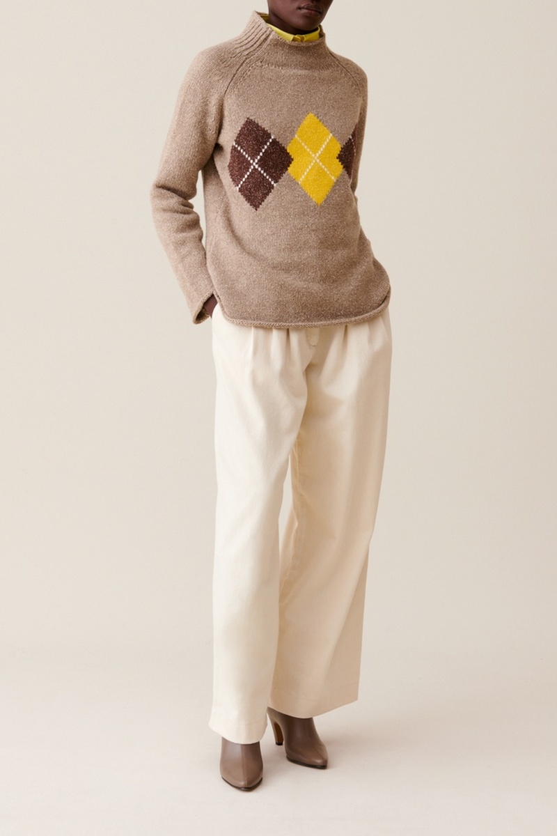 Cor: bege mesclado, castanho-escuro, amarelo e branco